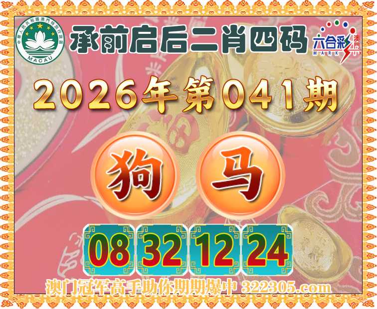 041期: 🍒『承前启后』 🍒二肖四码🍒【狗马】【08.32.12.24】开:马36准