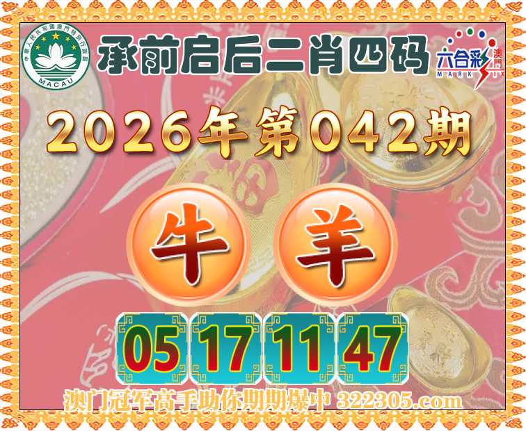 042期: 🍒『承前启后』 🍒二肖四码🍒【牛羊】【05.17.11.47】开:虎16错