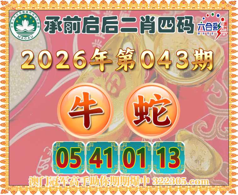 043期: 🍒『承前启后』 🍒二肖四码🍒【牛蛇】【05.41.01.13】开:蛇13准