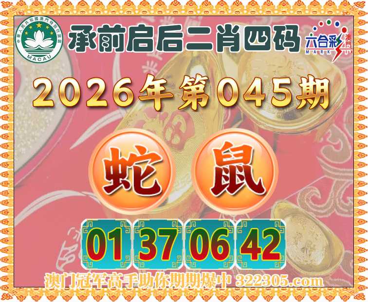 045期: 🍒『承前启后』 🍒二肖四码🍒【蛇鼠】【01.37.06.42】开:蛇01准
