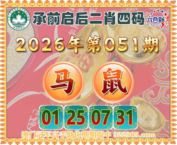 051期: 🍒『承前启后』 🍒二肖四码🍒【马鼠】【01.25.07.31】开:马01准