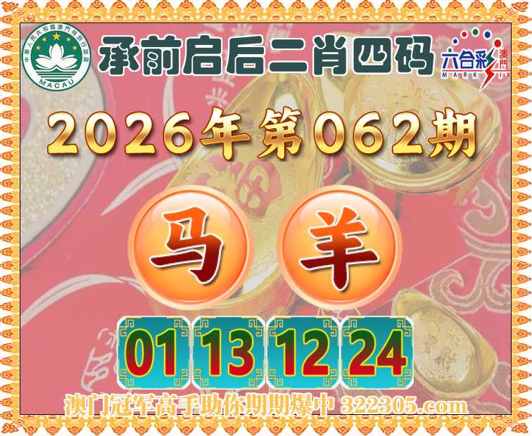 062期: 🍒『承前启后』 🍒二肖四码🍒【马羊】【01.13.12.24】开:羊24准