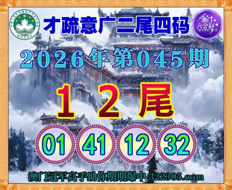 045期:【才疏意广】 ⚽二尾四码⚽【12尾主:01.41.12.32】开:01准