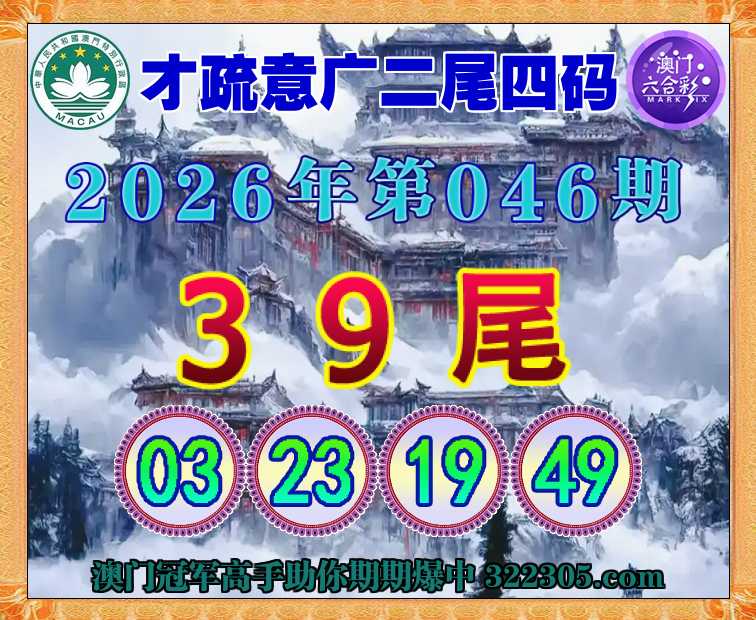 046期:【才疏意广】 ⚽二尾四码⚽【39尾主:03.23.19.49】开:03准