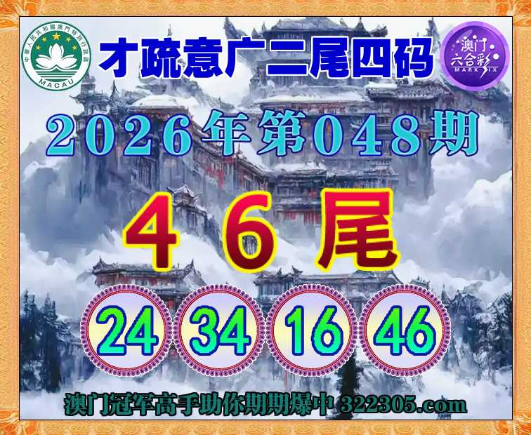 048期:【才疏意广】 ⚽二尾四码⚽【46尾主:24.34.16.46】开:24准