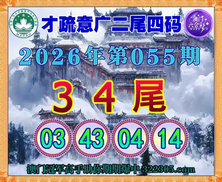 055期:【才疏意广】 ⚽二尾四码⚽【34尾主:03.43.04.14】开:14准