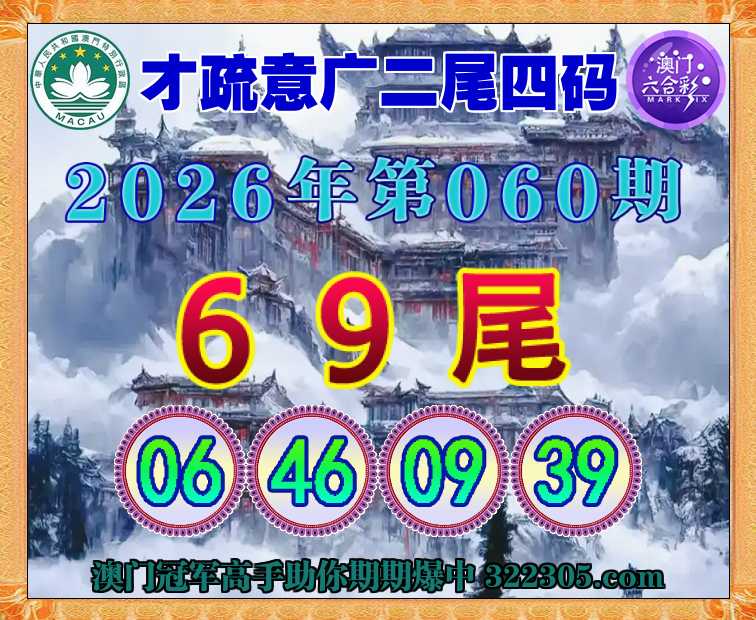060期:【才疏意广】 ⚽二尾四码⚽【69尾主:06.46.09.39】开:09准