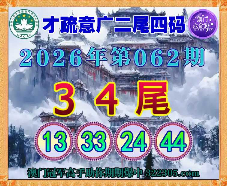 062期:【才疏意广】 ⚽二尾四码⚽【34尾主:13.33.24.44】开:24准