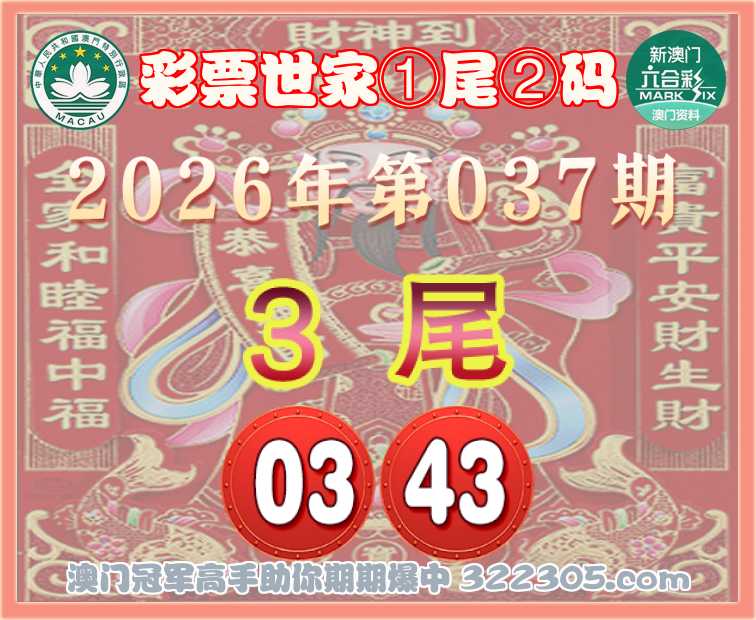 037期: 🎯『彩票世家』 🎯①尾②码🎯【3尾主:03.43】开:43准
