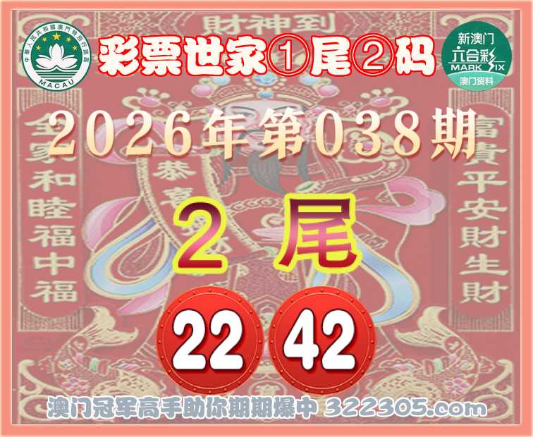 038期: 🎯『彩票世家』 🎯①尾②码🎯【2尾主:22.42】开:42准