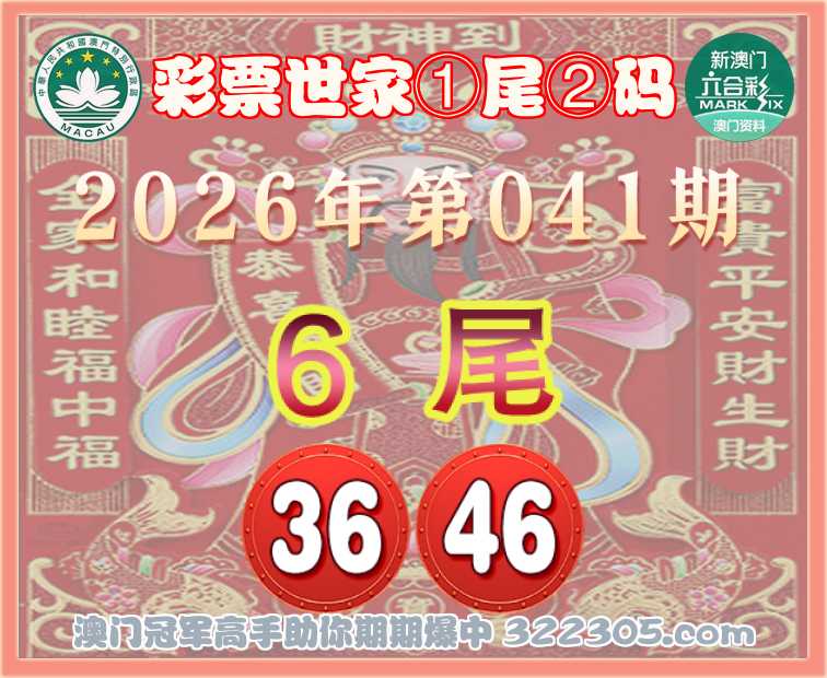 041期: 🎯『彩票世家』 🎯①尾②码🎯【6尾主:36.46】开:36准