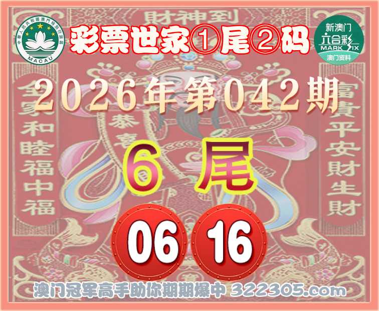 042期: 🎯『彩票世家』 🎯①尾②码🎯【6尾主:06.16】开:16准