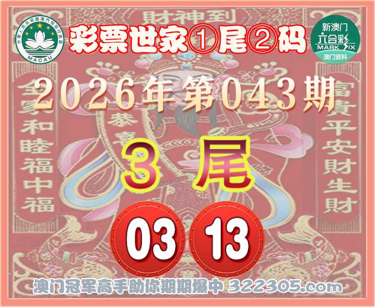 043期: 🎯『彩票世家』 🎯①尾②码🎯【3尾主:03.13】开:13准