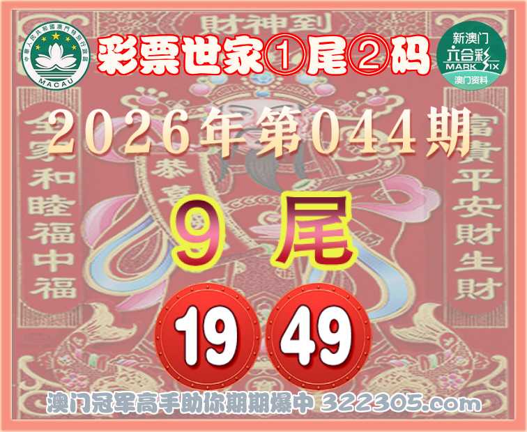 044期: 🎯『彩票世家』 🎯①尾②码🎯【9尾主:19.49】开:19准