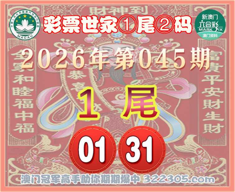 045期: 🎯『彩票世家』 🎯①尾②码🎯【1尾主:01.31】开:01准