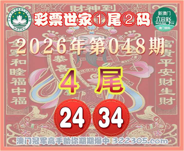 048期: 🎯『彩票世家』 🎯①尾②码🎯【4尾主:24.34】开:24准