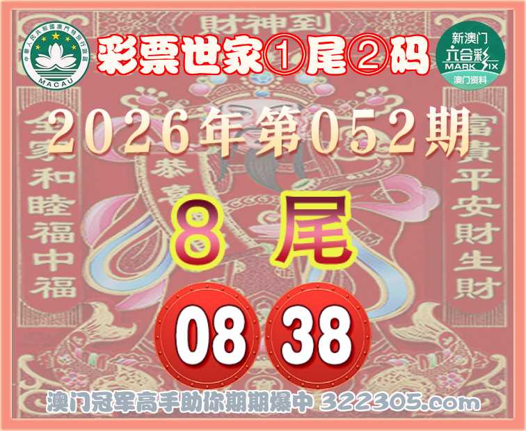 052期: 🎯『彩票世家』 🎯①尾②码🎯【8尾主:08.38】开:38准