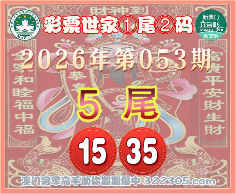 053期: 🎯『彩票世家』 🎯①尾②码🎯【5尾主:15.35】开:15准