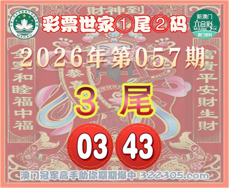 057期: 🎯『彩票世家』 🎯①尾②码🎯【3尾主:03.43】开:23准