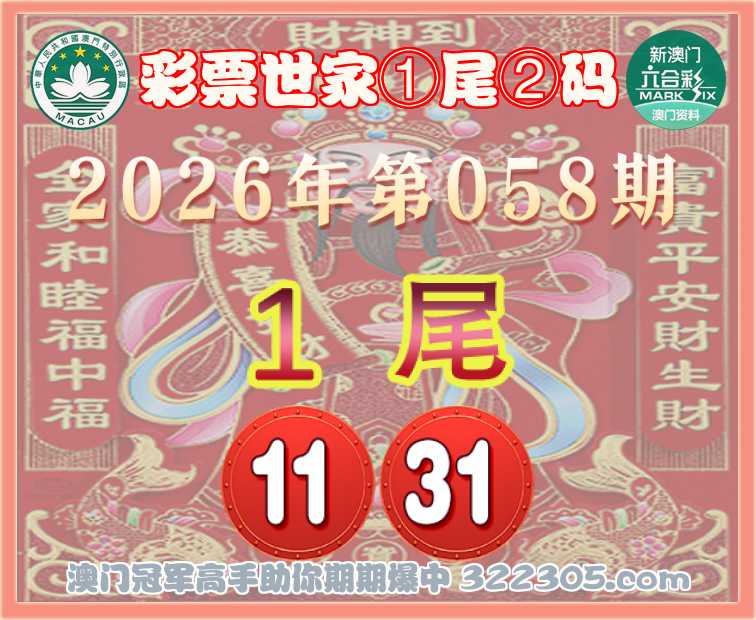 058期: 🎯『彩票世家』 🎯①尾②码🎯【1尾主:11.31】开:31准
