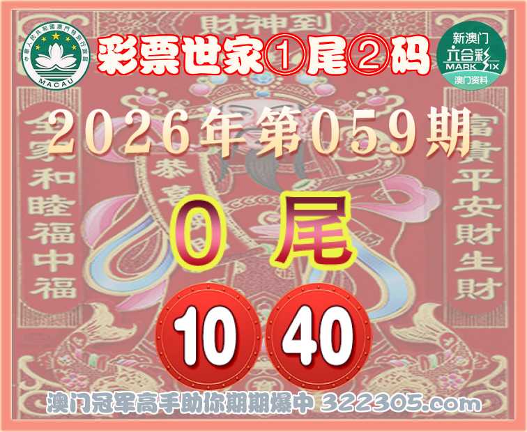 059期: 🎯『彩票世家』 🎯①尾②码🎯【0尾主:10.40】开:10准
