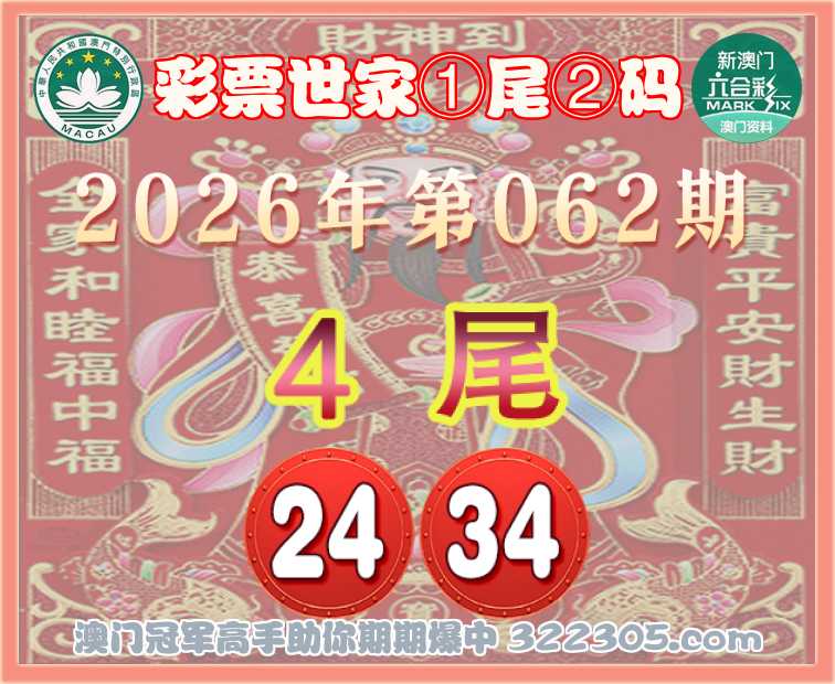 062期: 🎯『彩票世家』 🎯①尾②码🎯【4尾主:24.34】开:24准