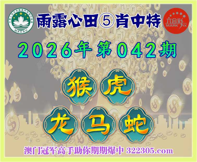 042期: 雨露心田 🍎⑤肖中特🍎【猴.虎.龙.马.蛇】开:虎16准