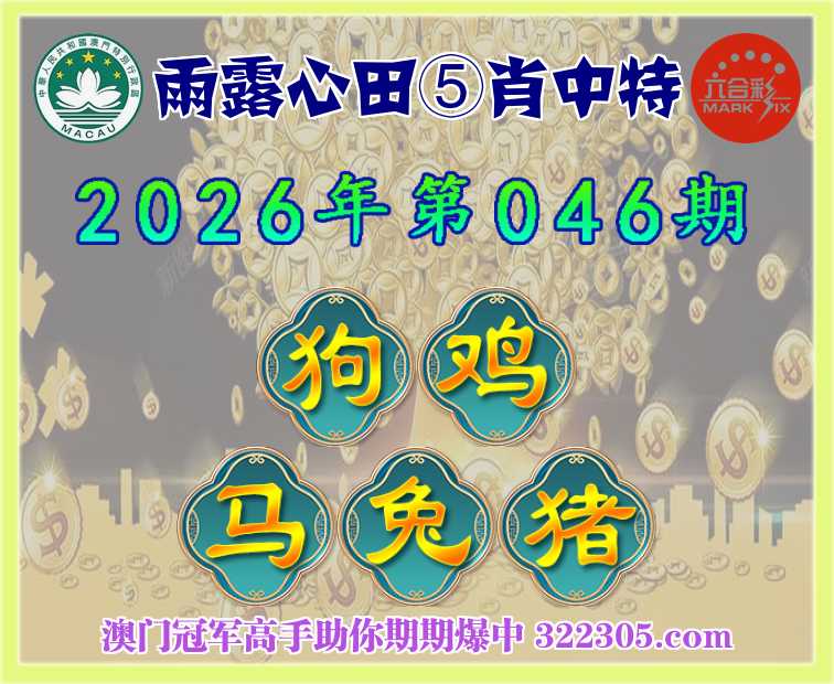 046期: 雨露心田 🍎⑤肖中特🍎【狗.鸡.马.兔.猪】开:兔03准