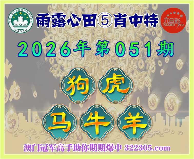 051期: 雨露心田 🍎⑤肖中特🍎【狗.虎.马.牛.羊】开:马01准