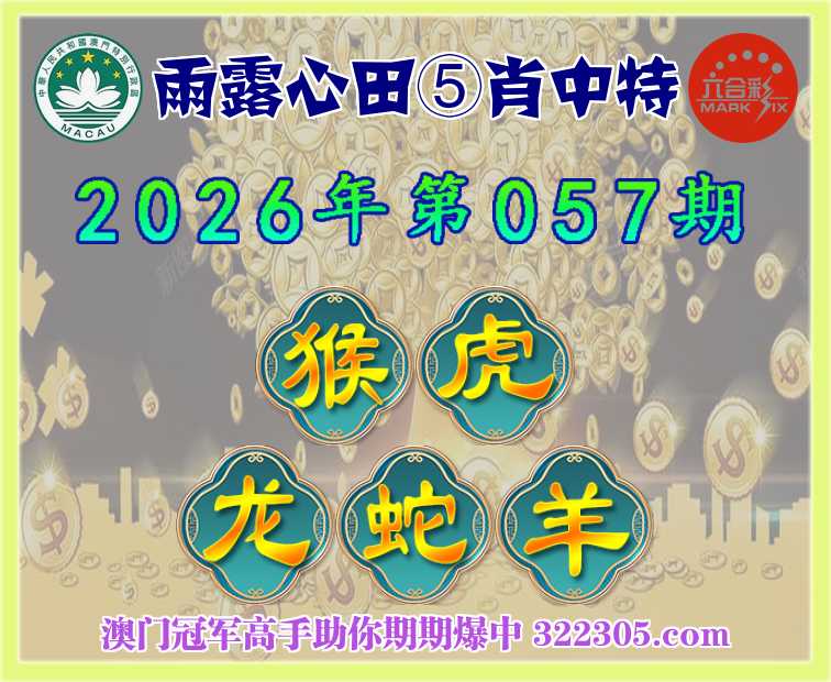 057期: 雨露心田 🍎⑤肖中特🍎【猴.虎.龙.蛇.羊】开:猴23准