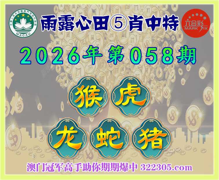 058期: 雨露心田 🍎⑤肖中特🍎【猴.虎.龙.蛇.猪】开:鼠31错