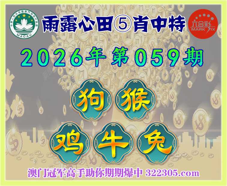 059期: 雨露心田 🍎⑤肖中特🍎【狗.猴.鸡.牛.兔】开:鸡10准
