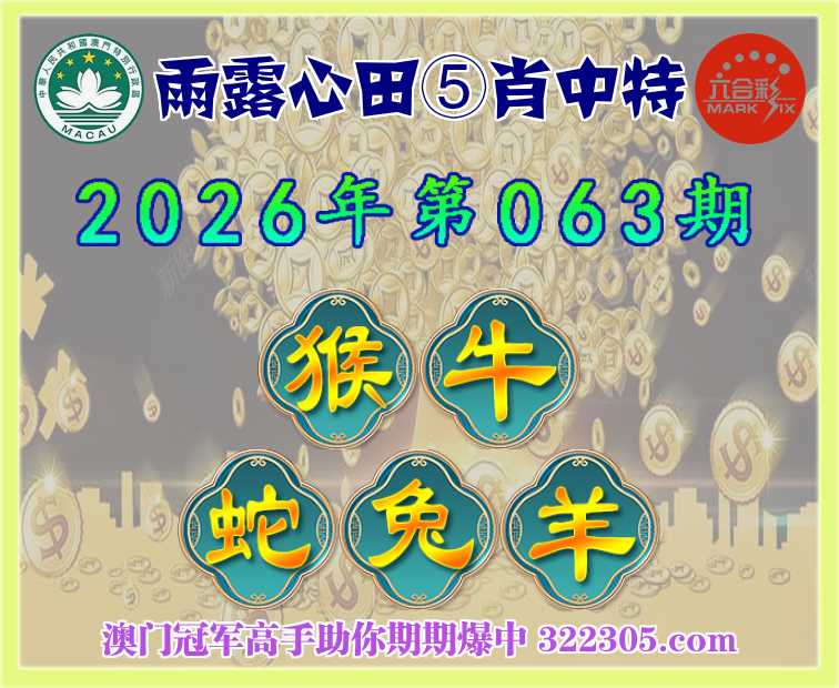 063期: 雨露心田 🍎⑤肖中特🍎【猴.牛.蛇.兔.羊】开:兔28准