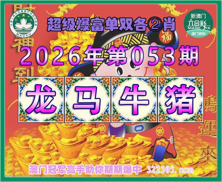 053期:《超级爆富》 ♣️单双各②肖 ♣️【龙.马.牛.猪】开:龙15准