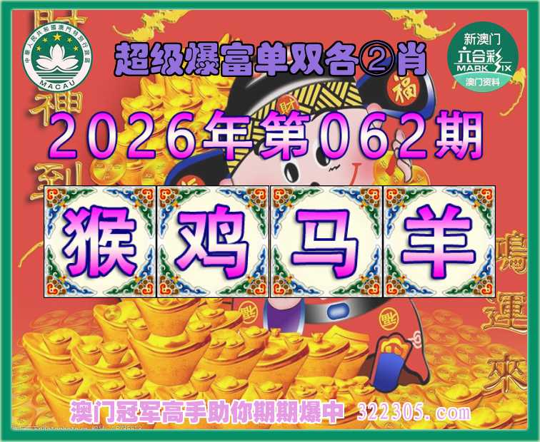 062期:《超级爆富》 ♣️单双各②肖 ♣️【猴.鸡.马.羊】开:羊24准