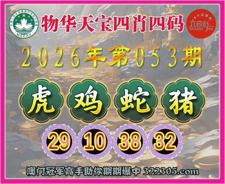 053期:『物华天宝』 👉四肖四码👉【虎鸡蛇猪】【29.10.38.32】开:龙15错