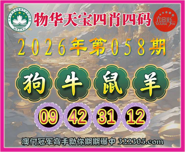 058期:『物华天宝』 👉四肖四码👉【狗牛鼠羊】【09.42.31.12】开:鼠31准