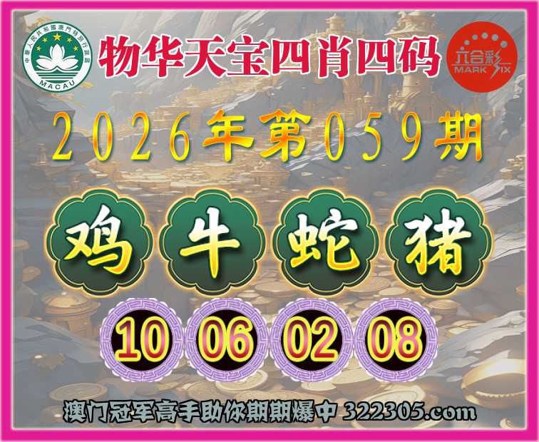 059期:『物华天宝』 👉四肖四码👉【鸡牛蛇猪】【10.06.02.08】开:鸡10准