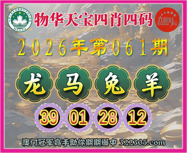 061期:『物华天宝』 👉四肖四码👉【龙马兔羊】【39.01.28.12】开:虎29错