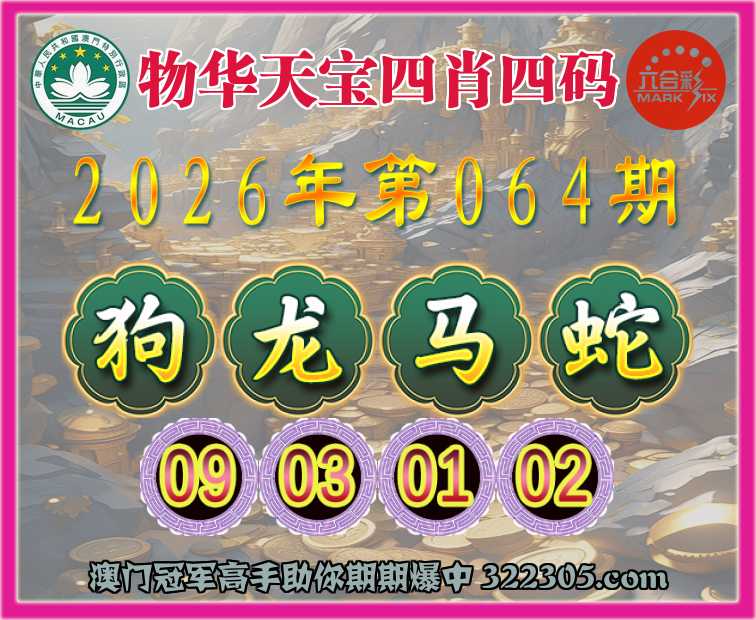 064期:『物华天宝』 👉四肖四码👉【狗龙马蛇】【09.03.01.02】开:00准