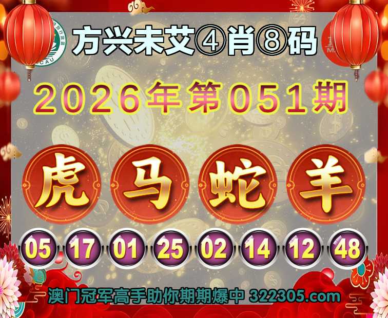 051期:【方兴未艾】 😍④肖⑧码😍【虎马蛇羊】开:马01准
