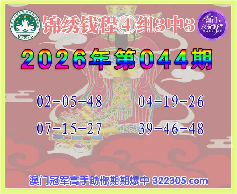 044期:【锦绣钱程】 🪢④组3中3🪢