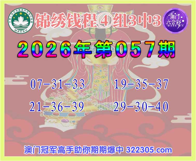 057期:【锦绣钱程】 🪢④组3中3🪢